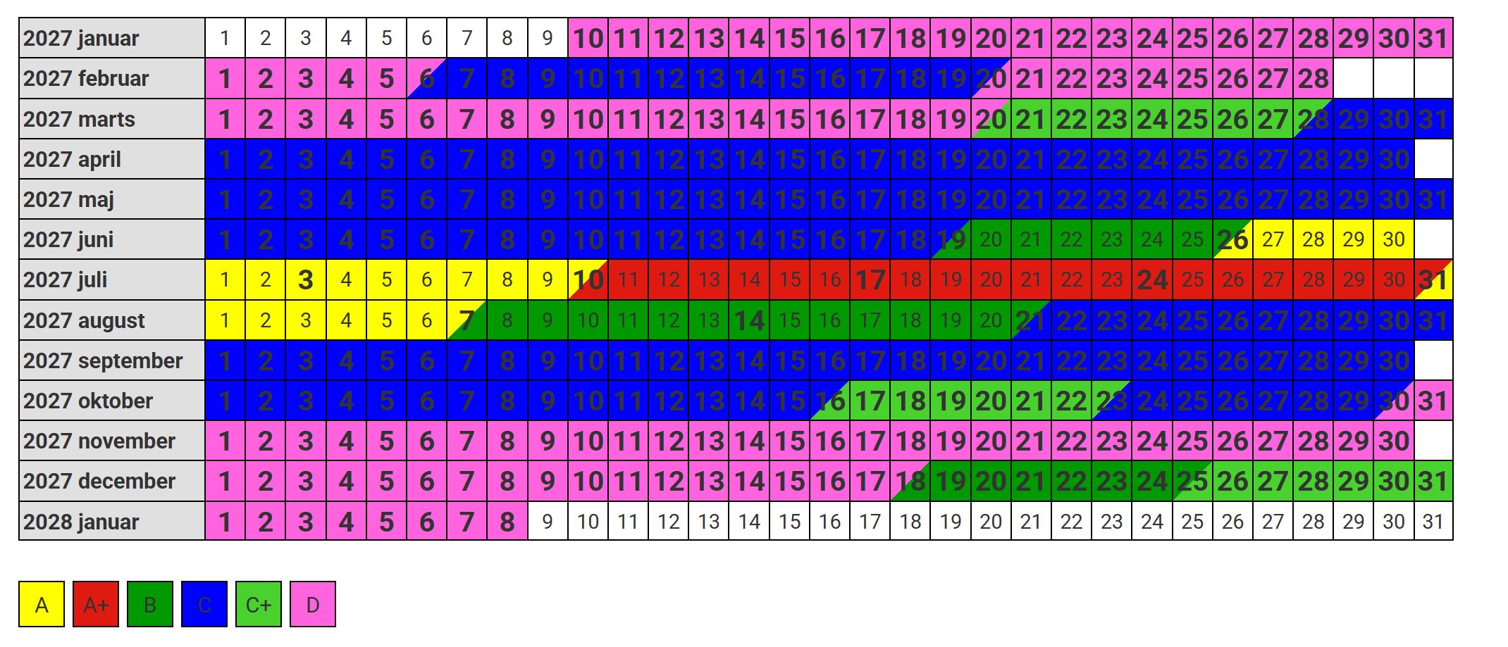 Sæsonkalender 2027